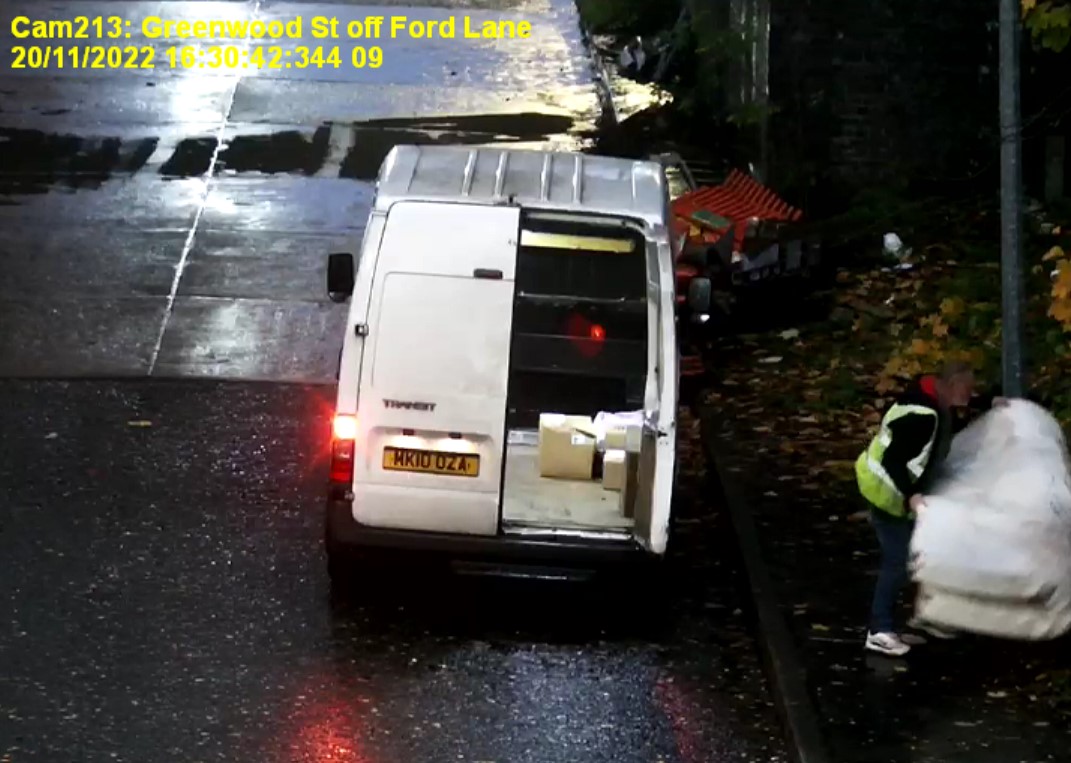 On Sunday, November 20, 2022, the driver of a white Ford Transit was captured on CCTV illegally disposing a double mattress on the land in Harding Street.