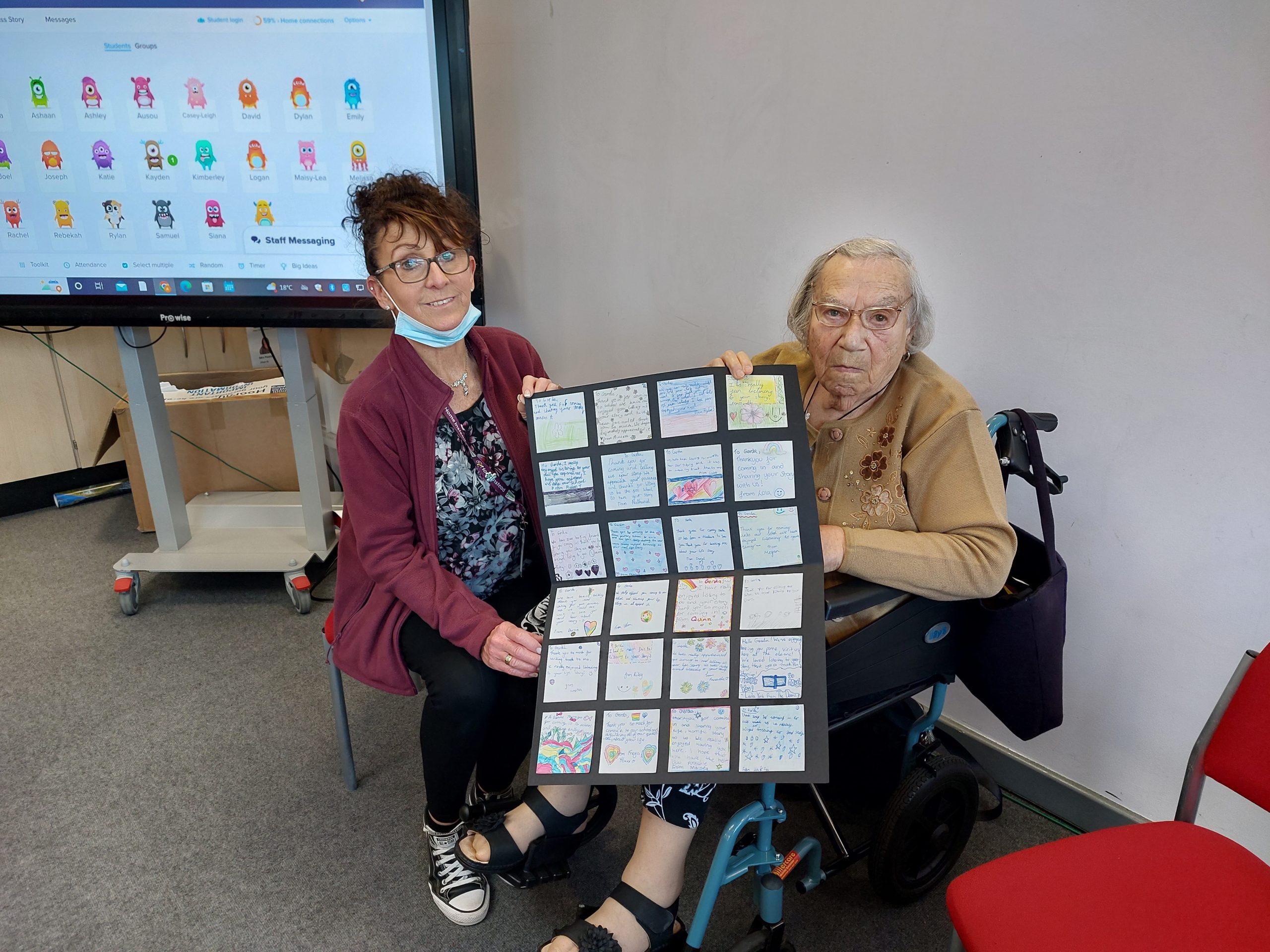 The Swinton school then created a collage board for Gerda’s birthday. Gerda still has the board hung up in her home.