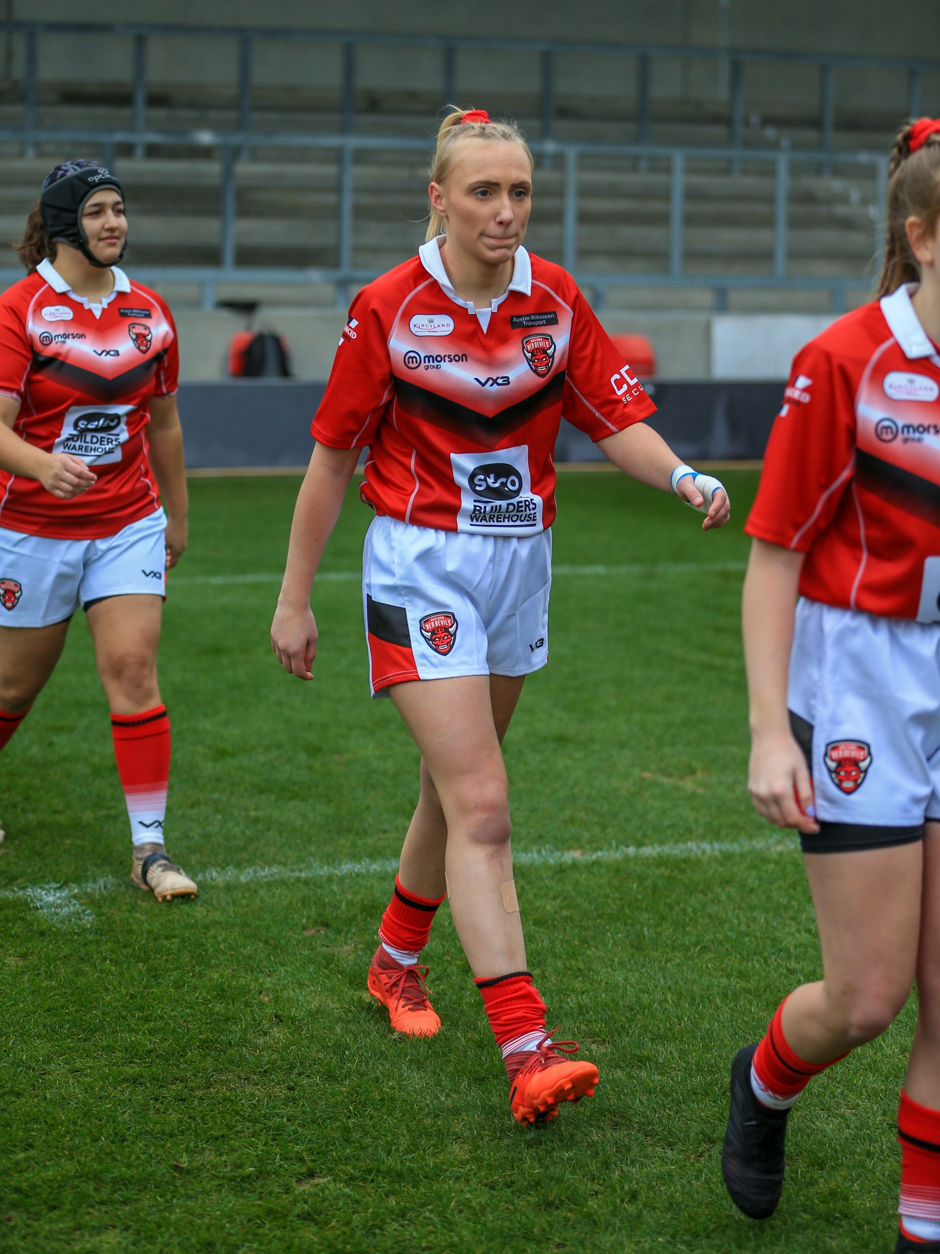 The try scorers were; Alex Simpson with two, Michelle Davis, Marnie-Lee Kelly, Jen Myler with two, Summer Harris and Sam Evans.