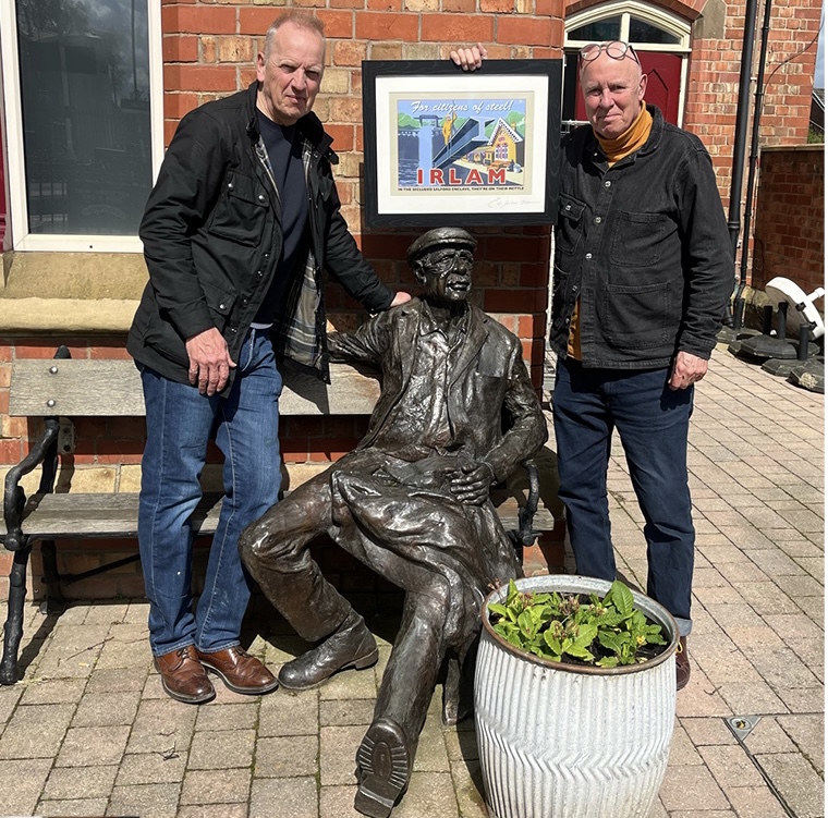 North West-based artist Eric Jackson has presented the Man on the Bench sculptor Simon Law with a poster of his most notable work.