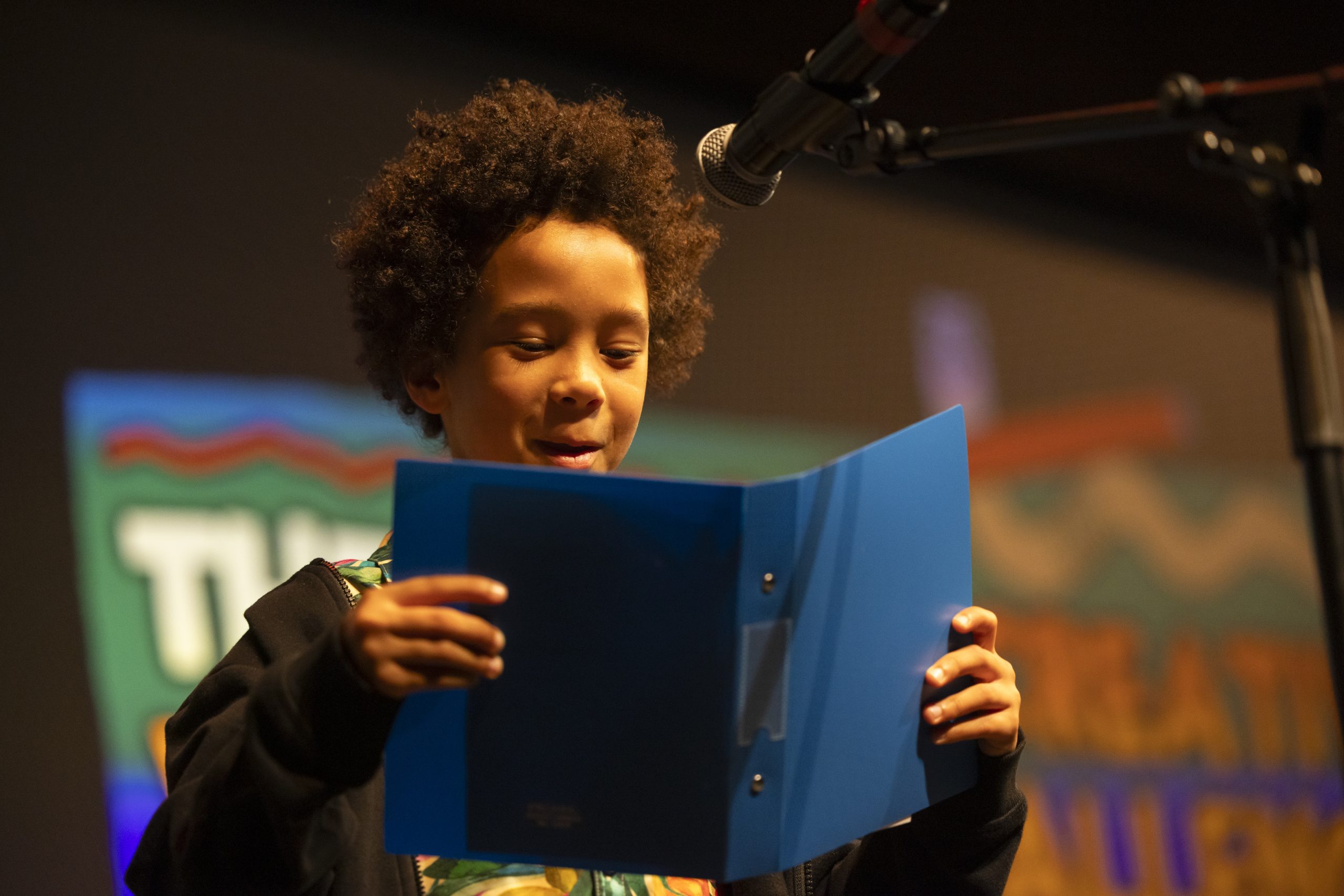 In the Playscript category – (winner) Henry Amella (age 9) for Snap and (runner-up) Bilal Sultan (age 9) for Trip to Cyprus. And in the Short Story category – (winner) Imogen Cawsey (age 11) for Black Hood and (runner-up) Kaio Devine dos Santos (age 8) for The Diary of Lost Stories.