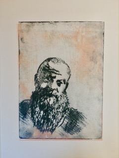 “Etching involves taking a metal or plastic plate and using a needle or other abrasive tool to cut into it. You then run it through a press to then put it onto paper.”