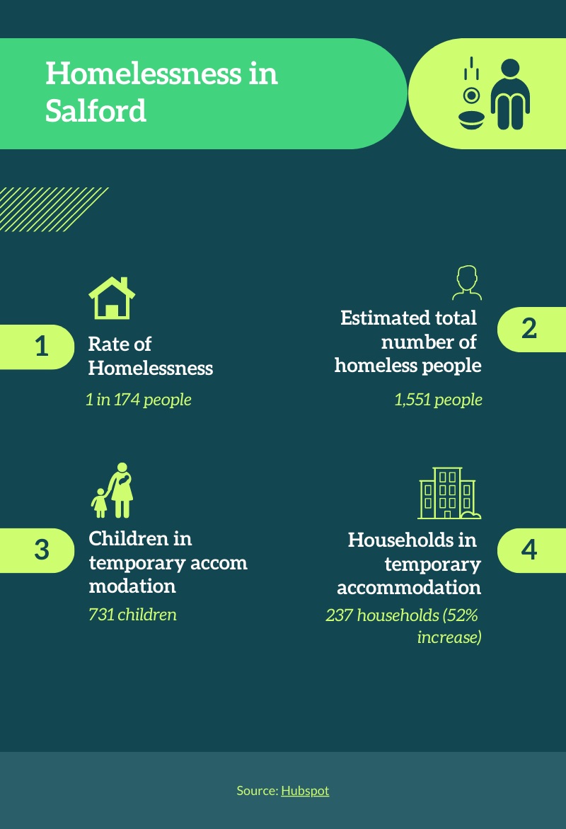 The latest stats from the Office of National Statistics from July- September 2023 also state that 722 households in Salford are facing temporary accommodation.