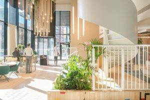 The building’s living wall improves air quality, helps reduce urban heat and increases biodiversity with a 174 per cent net gain across more than 32 plant species. The development’s design has made it a benchmark for low-carbon construction and wellbeing-focused workplaces.