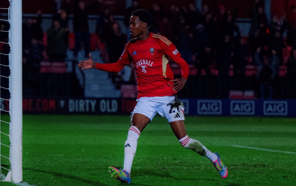 This chance proved to be costly for The Red Devils as, soon after, Jorge Grant curled a free-kick towards goal. It dropped to the feet of Butcher, who neatly tapped the ball at the inside of the post to put the Ammies ahead.
