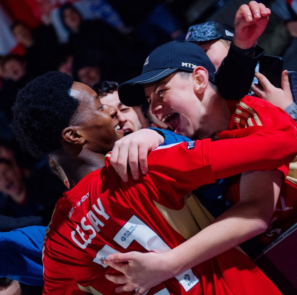 Salford snatched the ball from the kickoff. Austerfield weighed a pass perfectly to the feet of fellow substitute Cesay, who wrapped the ball around the keeper to win it for the Ammies.