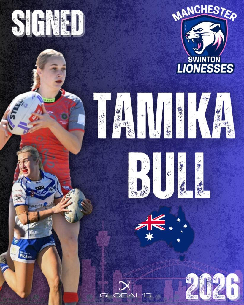 Head Coach of the Lionesses, John Walley, said: “Firstly, I would like to thank the foundation, club, Global 13 and Moxie Sports Management for making this happen. I am really pleased to have Tamika on board for 2026. She is an exciting talent with genuine playmaking ability and a strong rugby league IQ.