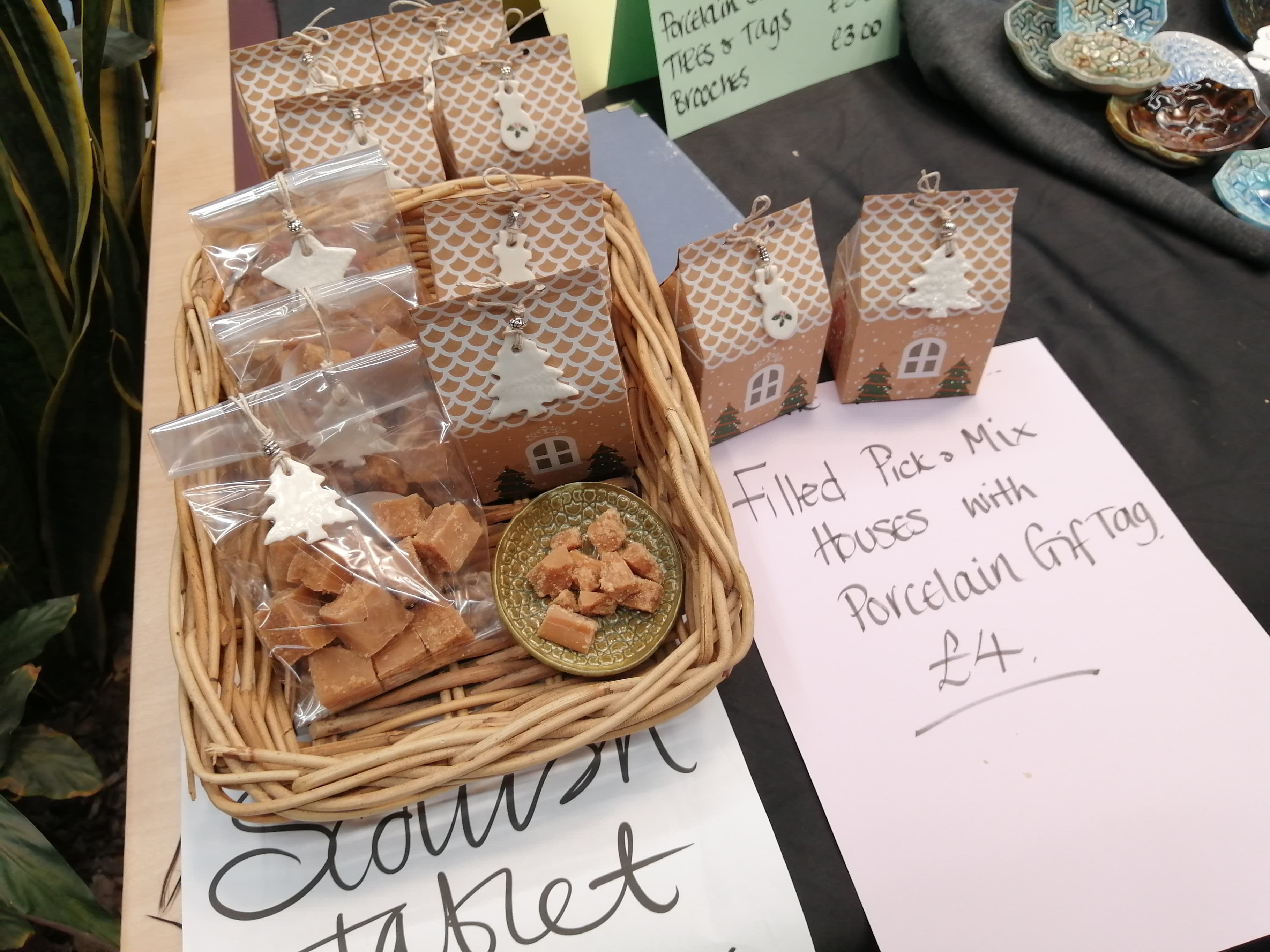 At Hilly’s humble stall, customers are greeted with a selection of homemade porcelain gifts, including colourful dishes, Christmas ornaments and handprinted tags, each one completely unique.