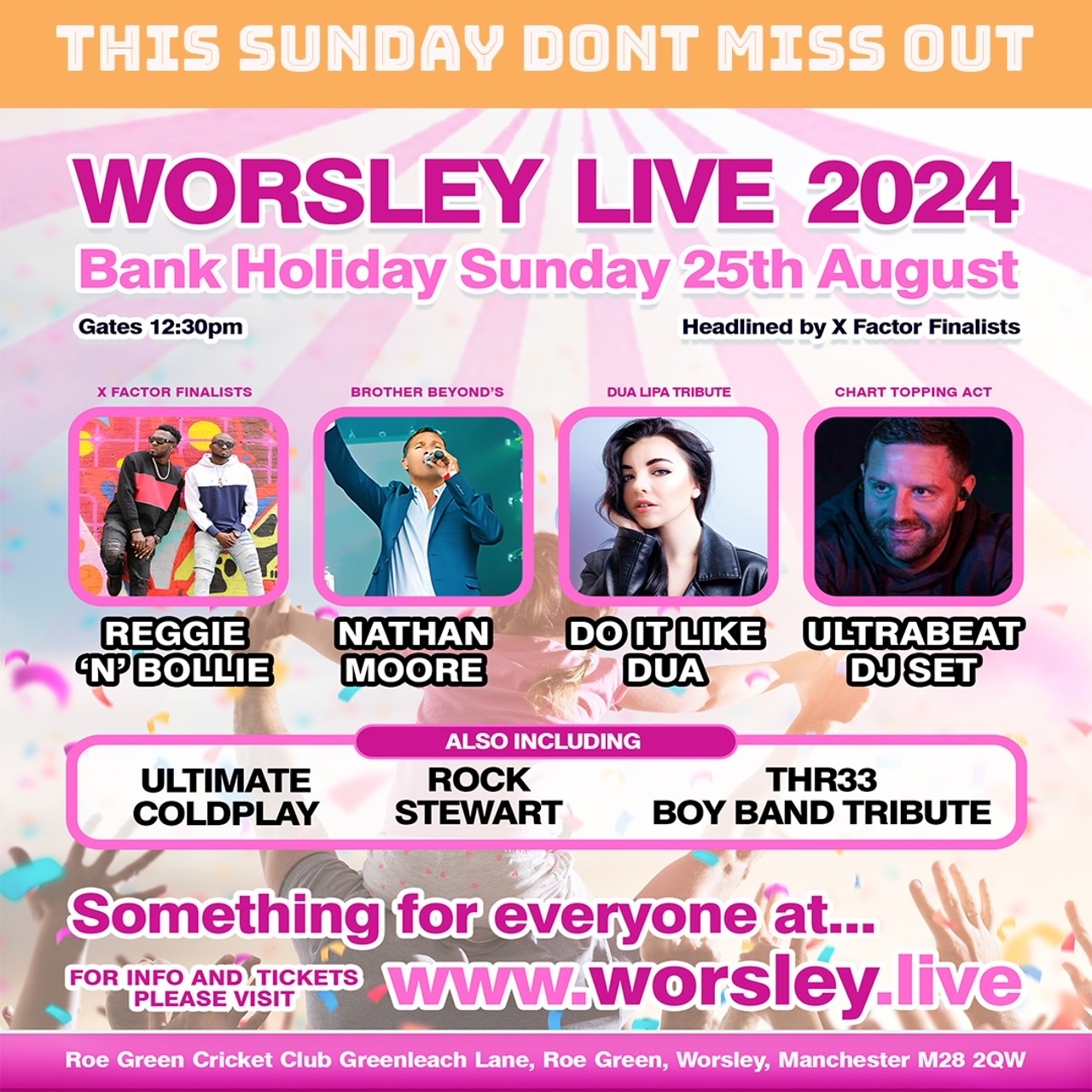 Additionally, there will be a number of tribute acts that will hit the stage this Sunday for Worsley Live’s fourth year running.